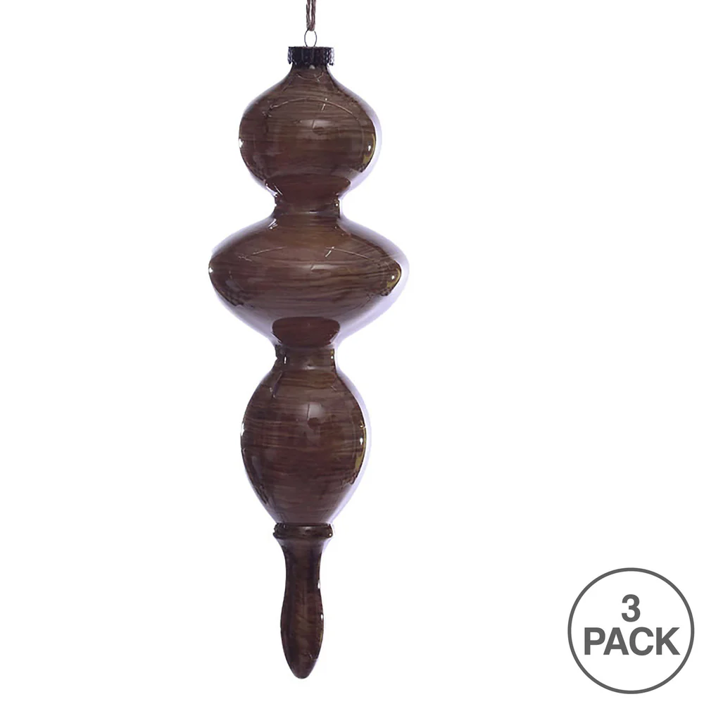 Vickerman 14" Brown Wood Grain Bubble Finial Ornament Pack of 3