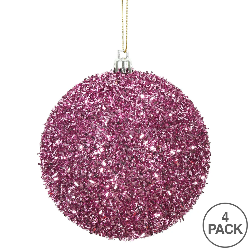 Vickerman 4" Pink Tinsel Ball Ornament 4 per Bag
