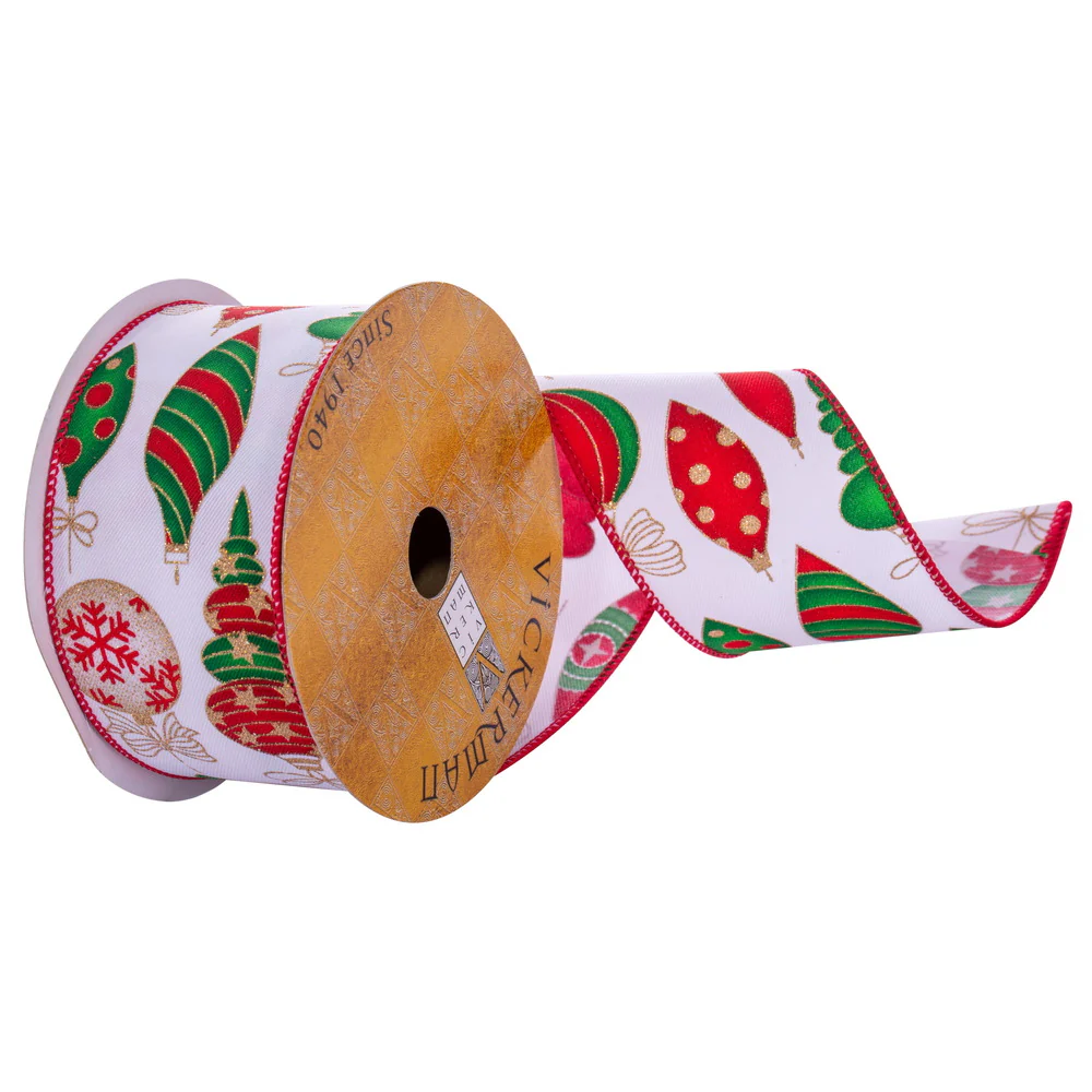 Vickerman 2.5" x 10 Yards White Novelty Ornaments Ribbon.