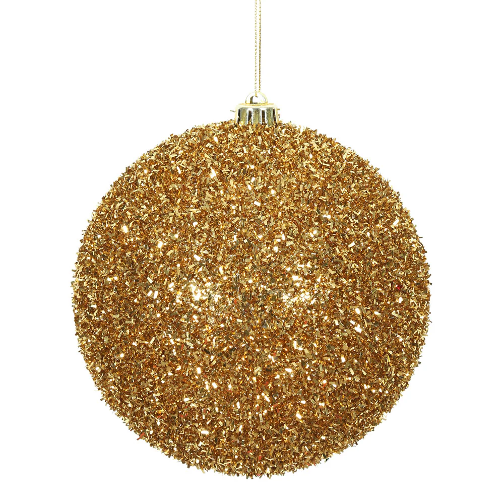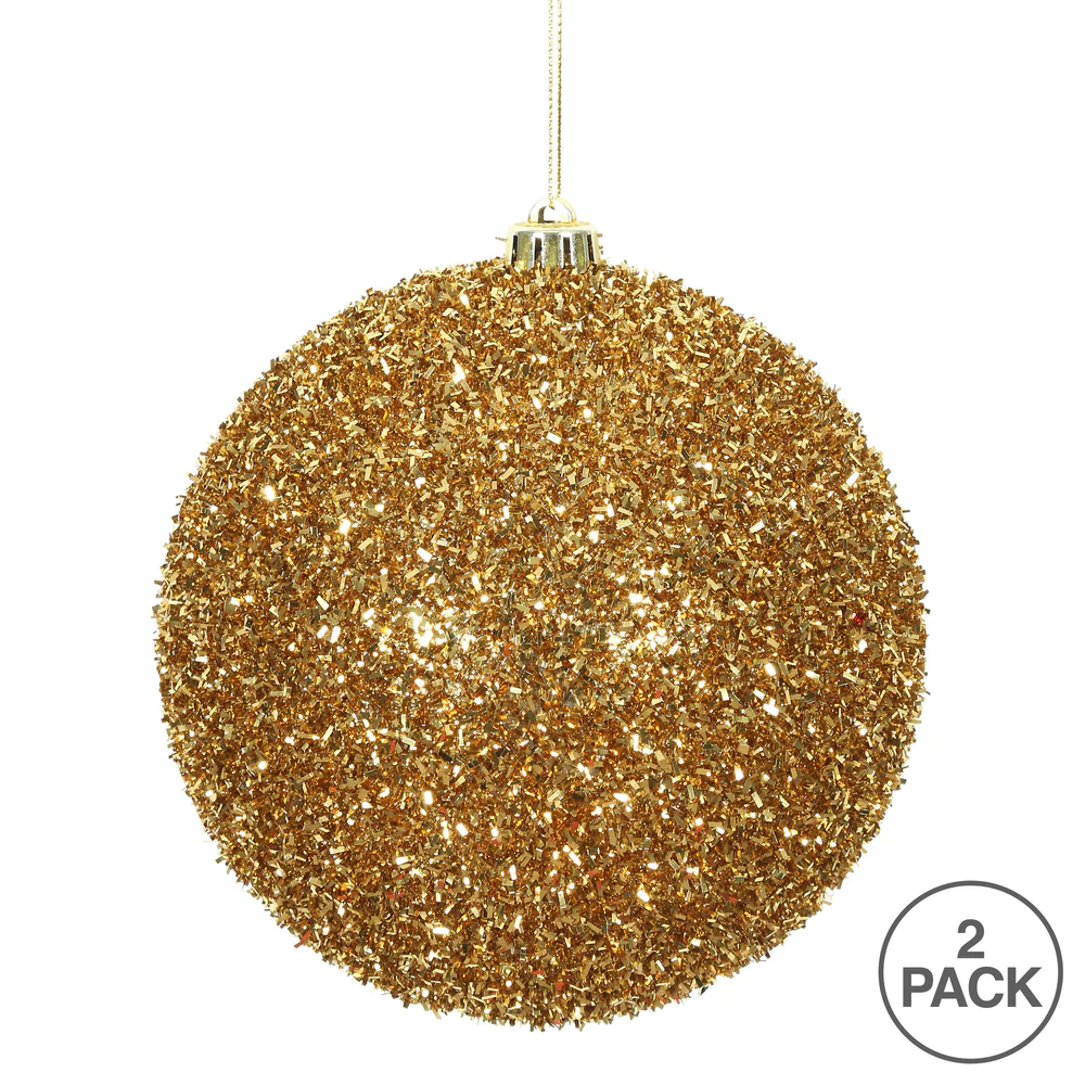 Vickerman 6" Antique Gold Tinsel Ball Ornament 2 per Bag