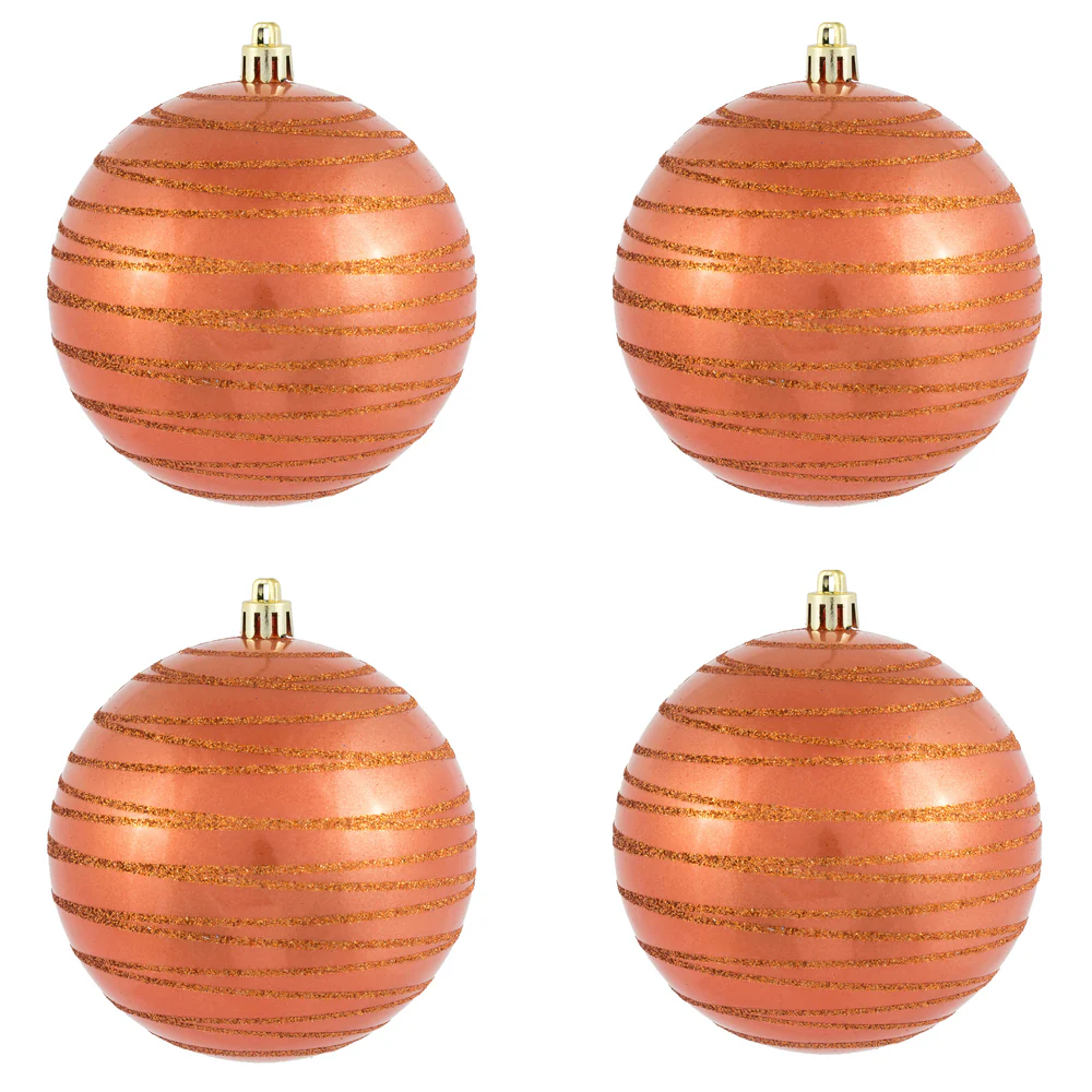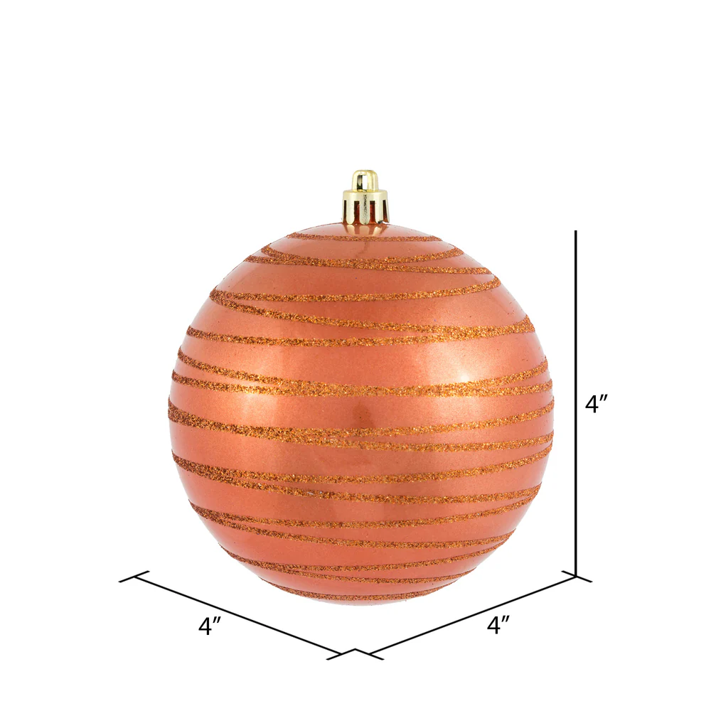 Vickerman 4" Coral Candy Finish Ball Ornament with Glitter Lines 4 per Bag