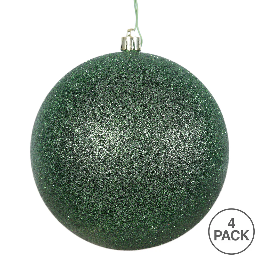 Vickerman 4.75" Emerald Glitter Ball Ornament 4 per Bag