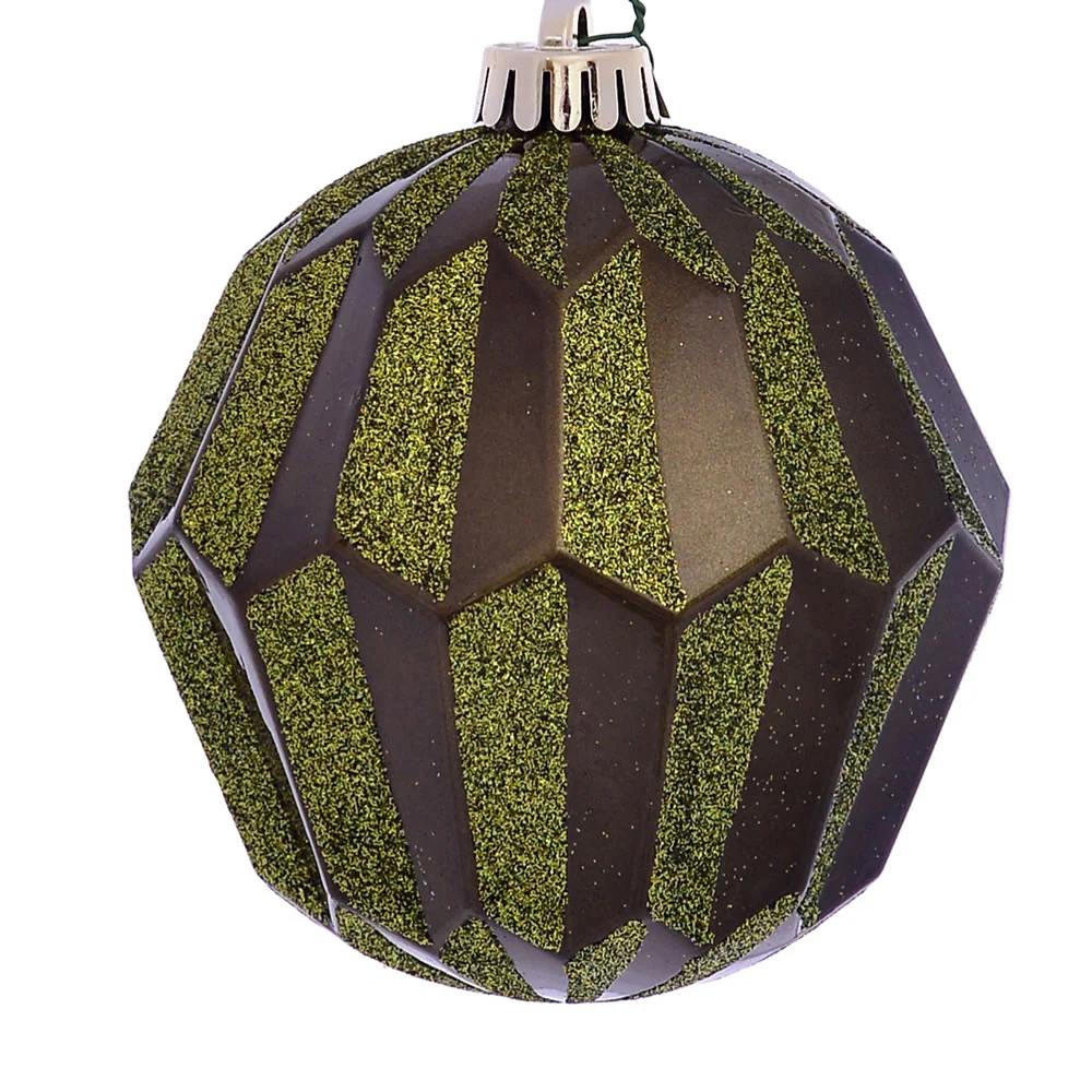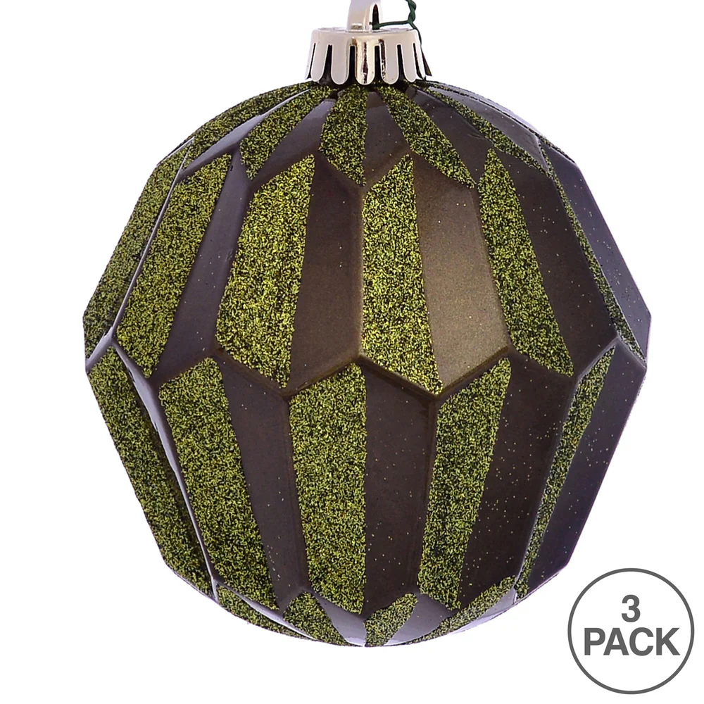 Vickerman 5" Olive Glitter Faceted Ball Ornament 3 per Bag