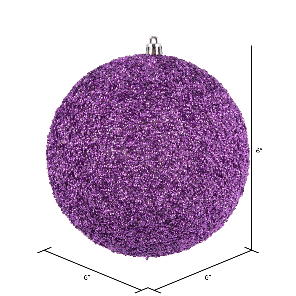 Vickerman 6" Orchid Beaded Ball Ornament 4 per Bag