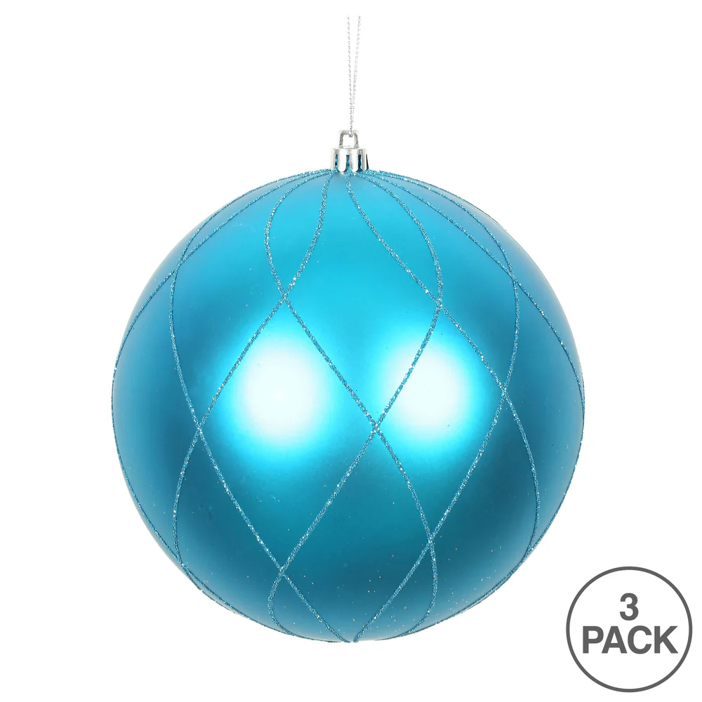 Vickerman 6" Turquoise Matte and Glitter Swirl Ball Ornament 3 per Box