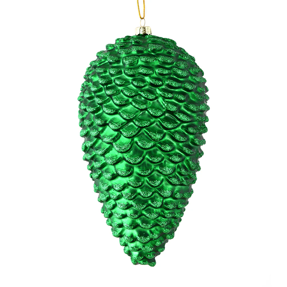 Vickerman 10" Green Matte Glitter Pinecone Christmas Ornament Pack of 2
