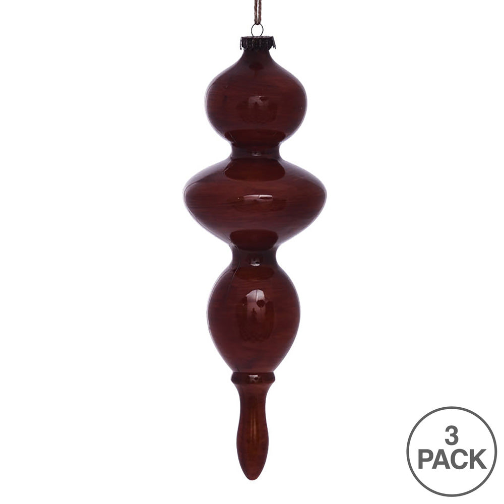 Vickerman 14" Copper Wood Grain Bubble Finial Ornament Pack of 3