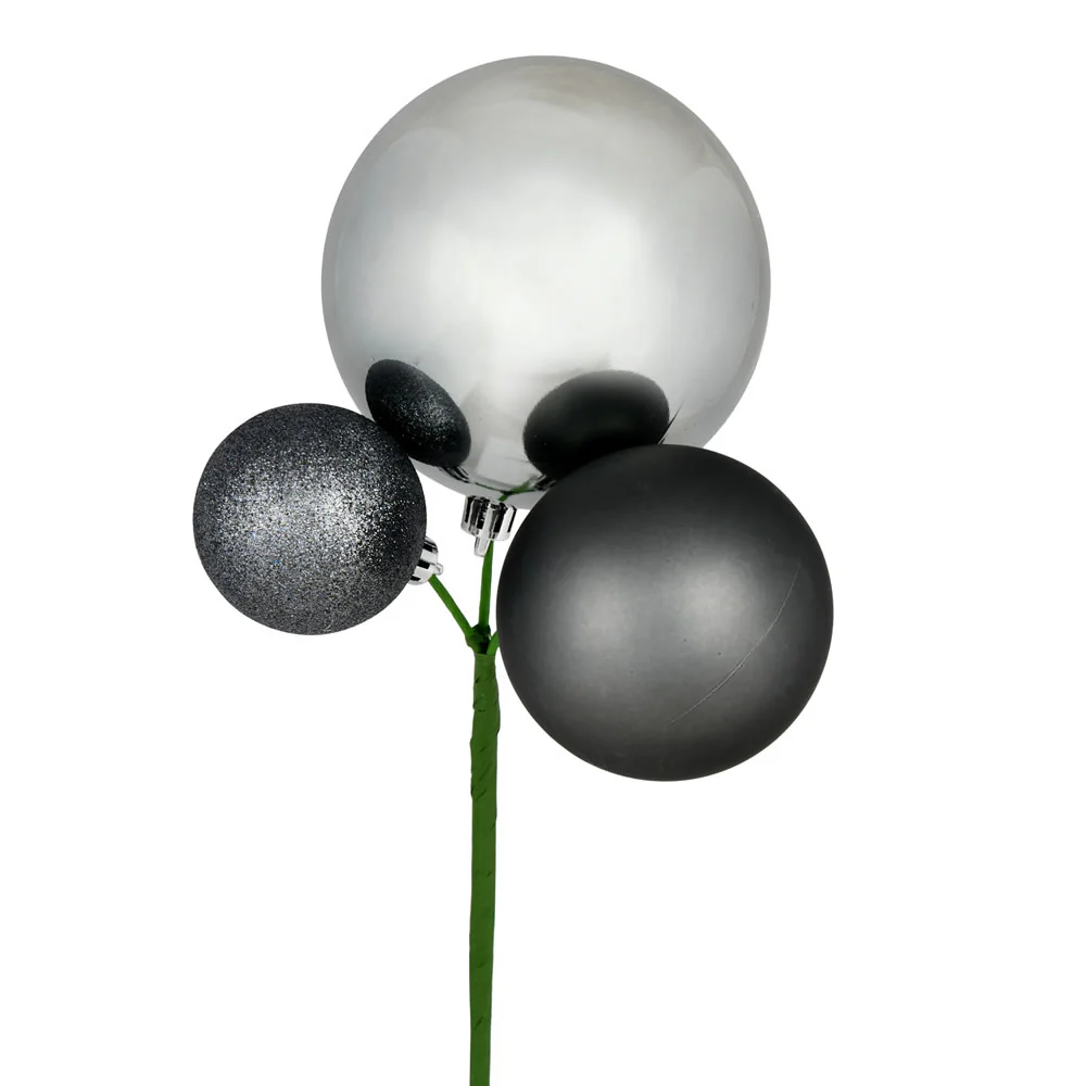 Vickerman 18" Pewter Ball Ornament Christmas Pick Set of 3