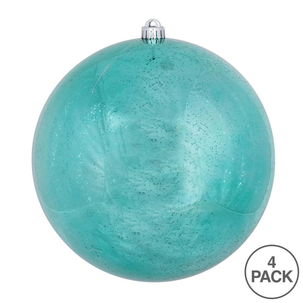 Vickerman 6" Teal Shiny Mercury Ball Ornament 4 per Bag