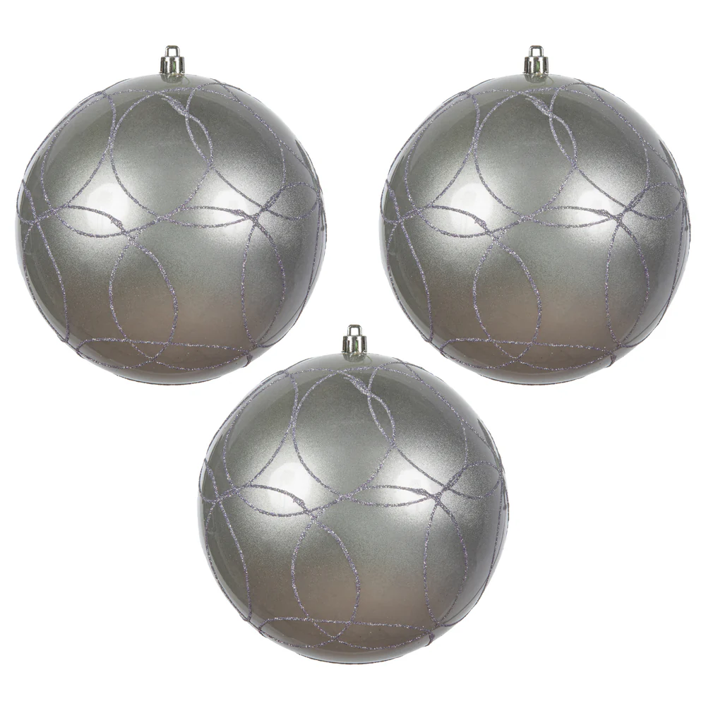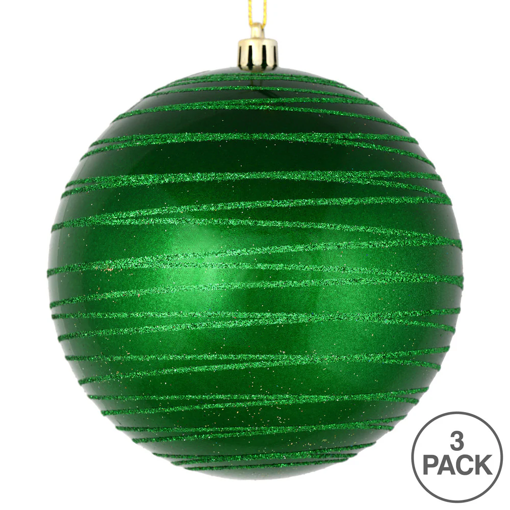 Vickerman 6" Green Candy Finish Ball Ornament with Glitter Lines 3 per Bag