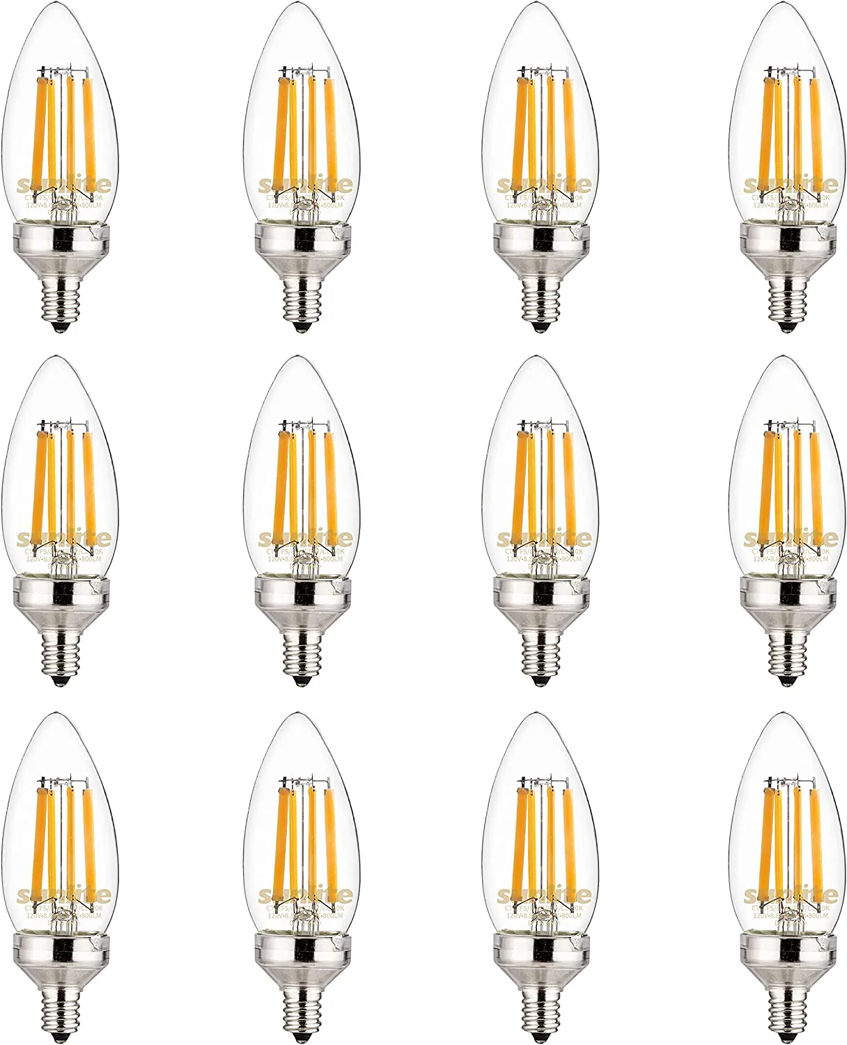 Sunlite 81338 LED Edison B11 Torpedo Tip Chandelier Light Bulb, 8.8 Watts (75 W Equivalent), 800 Lumens, Candelabra E12 Base, Dimmable, UL Listed, Title 20 Compliant, 90 CRI, 5000K Super White, Pack of 12
