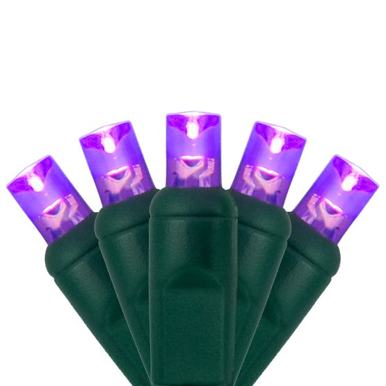 50 Light LED Conical (5MM) Light Set Purple Bulbs on Green Wire, Approx. 17'4" Long