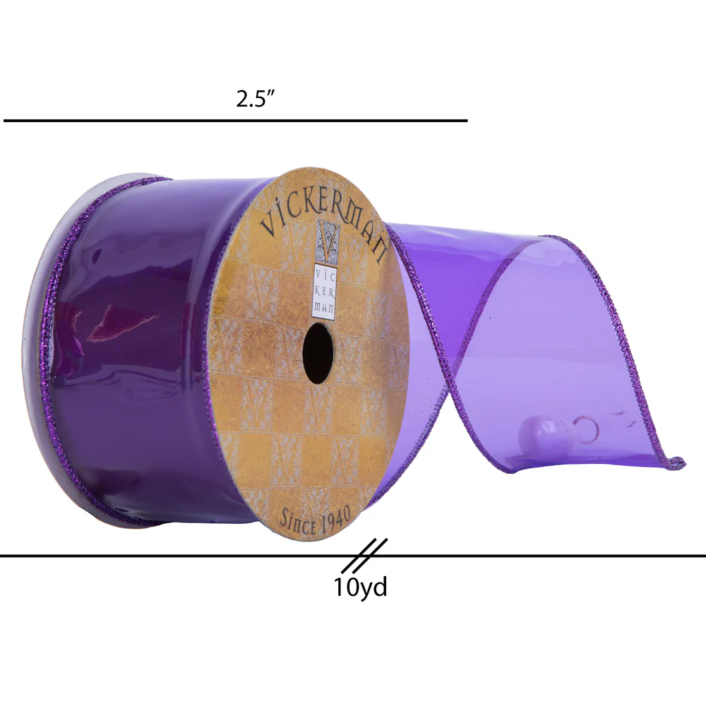 Vickerman 2.5" x 10 Yards Purple Transparent PVC Christmas Ribbon