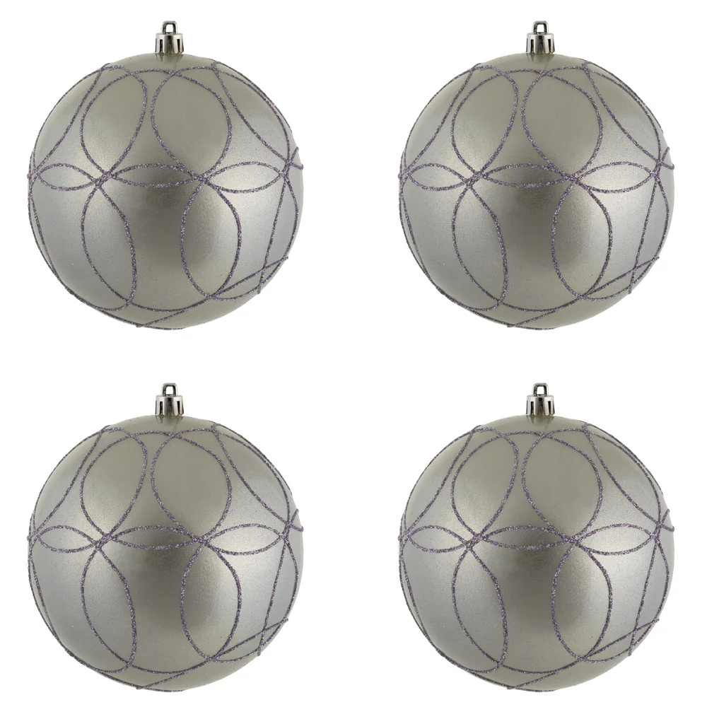 Vickerman 4.75" Lilac Glitter Geo Ball 4/Bg