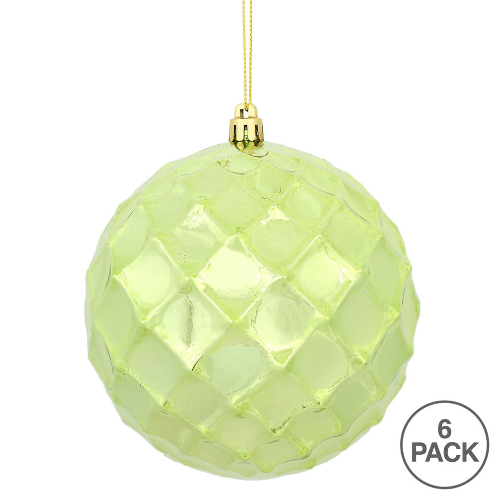 Vickerman 4" Celadon Shiny Diamond Bauble Ornament 6 per Bag