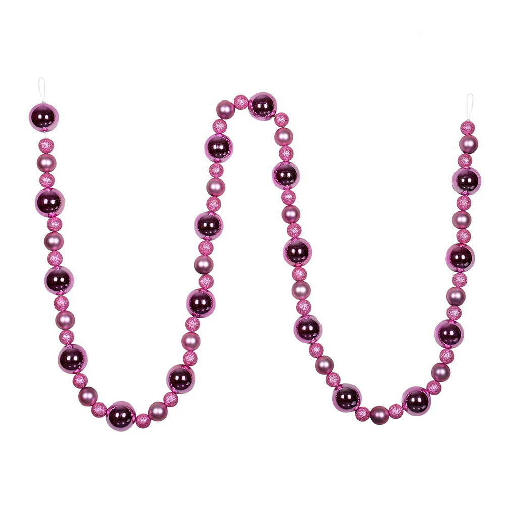Vickerman 9' Pink Assorted Christmas Ball Ornament Garland