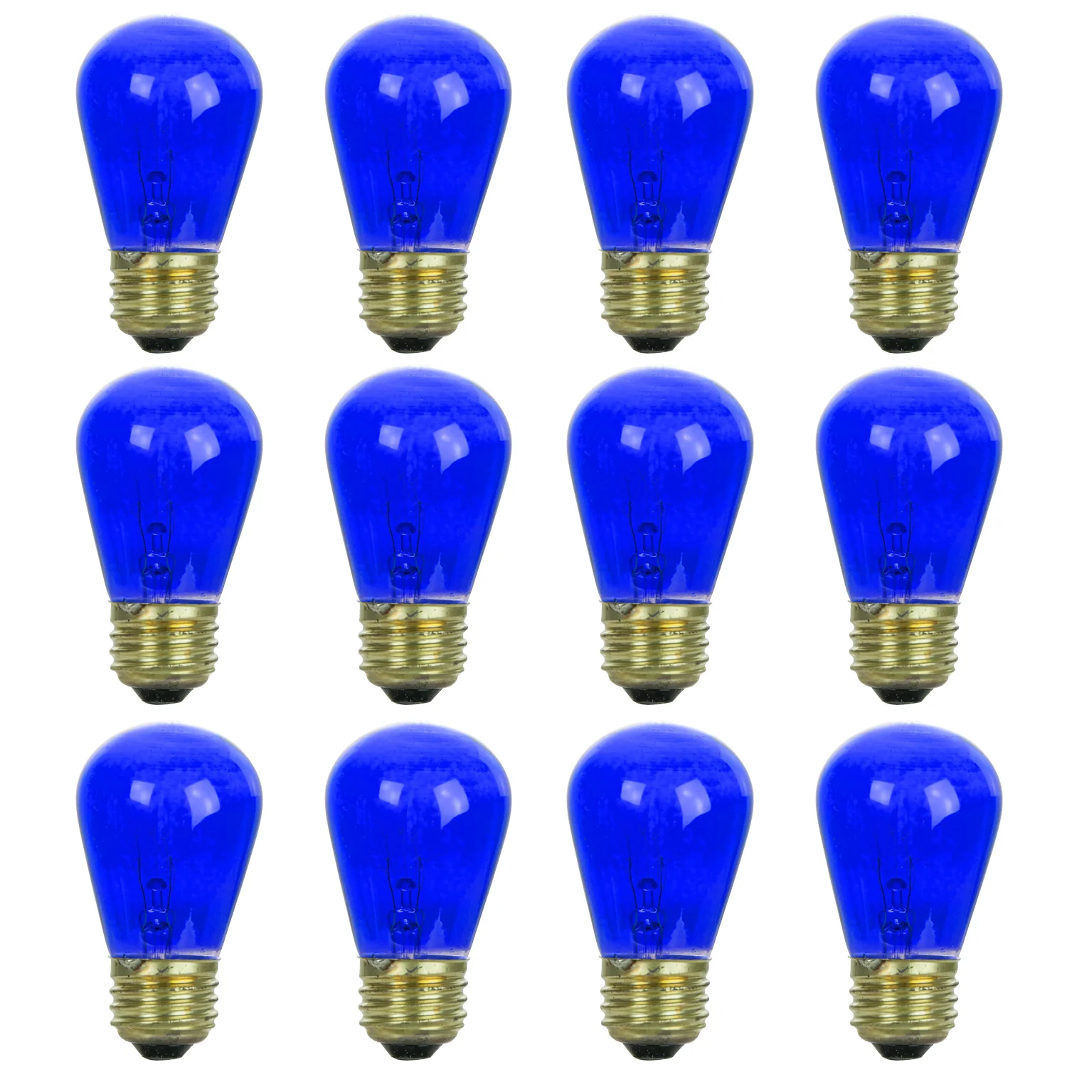 Sunlite 41482-SU S14 Incandescent Colored Party String Light Bulb, 11 Watts, Medium Base (E26), Dimmable, Mercury Free, Transparent Blue 12 Pack