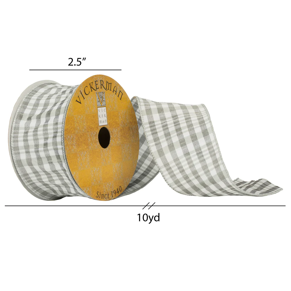 Vickerman 2.5" x 10 Yards Gray and White Plaid Christmas Ribbon