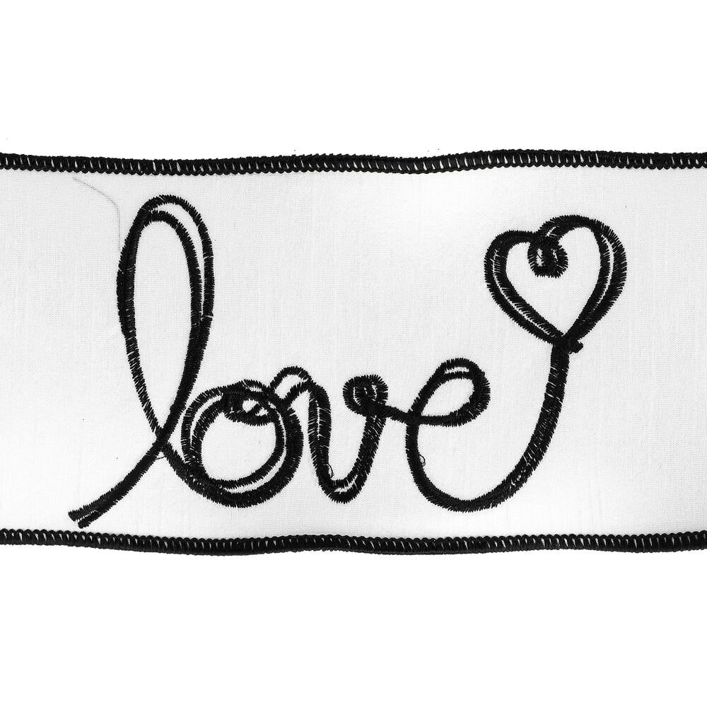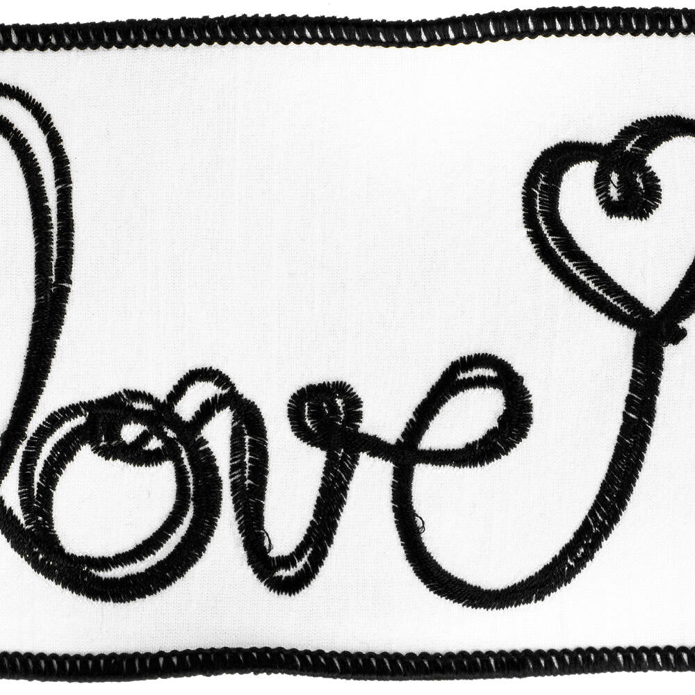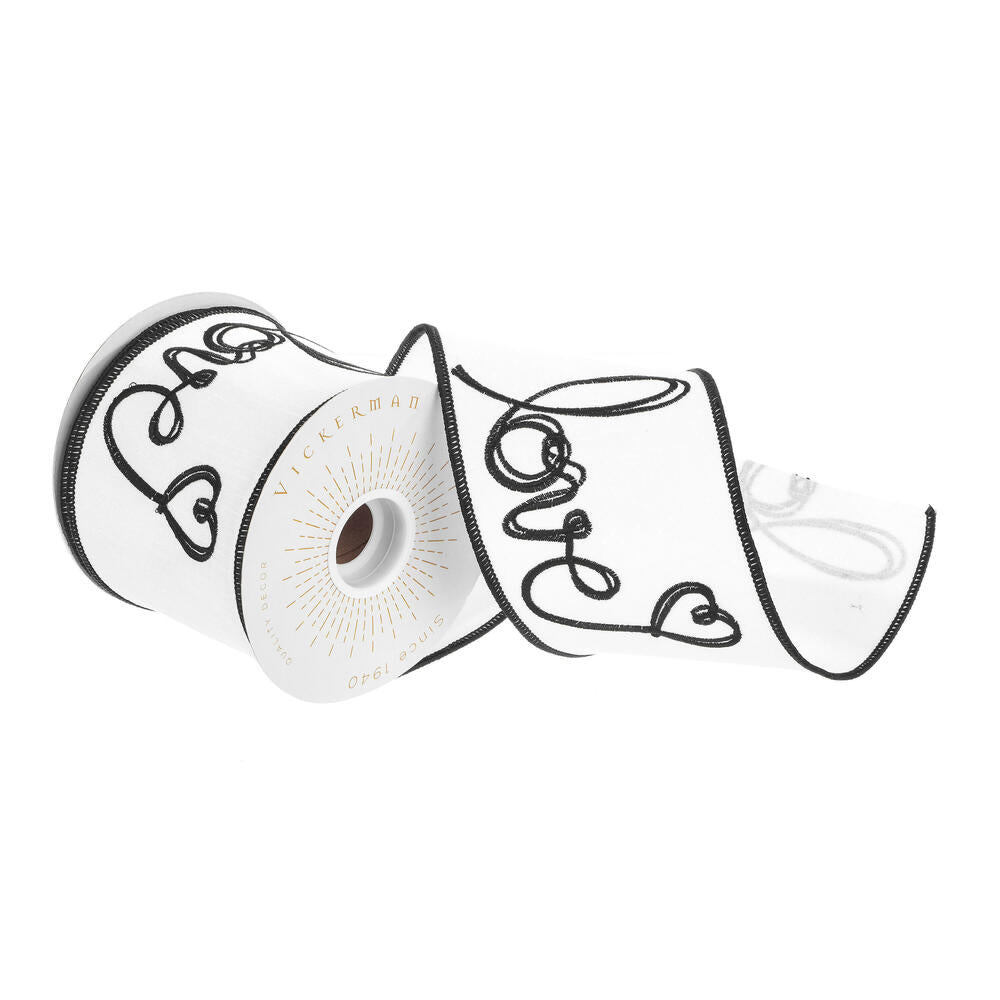 Vickerman 4" x 10 Yards White/Black "Love" Print Wired Edge Holiday Ribbon.