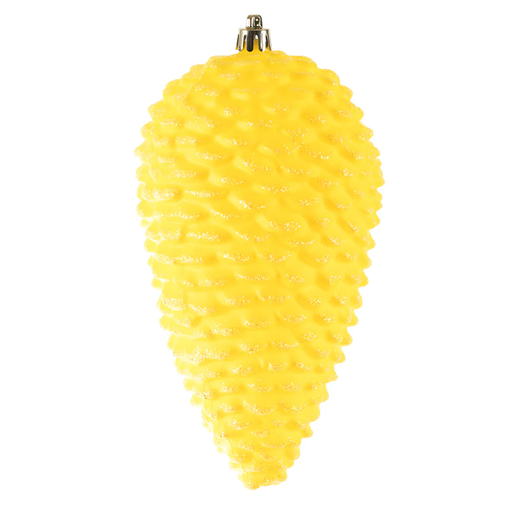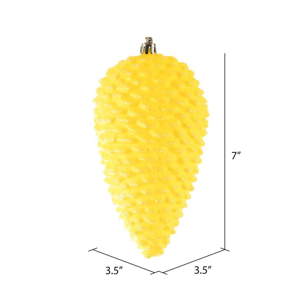 Vickerman 7" Yellow Matte Glitter Pinecone Christmas Ornament 4 per set