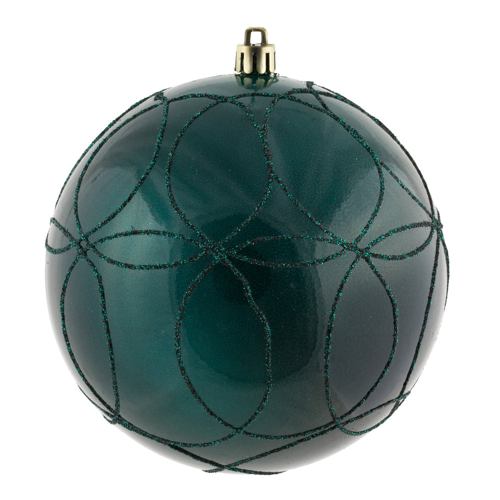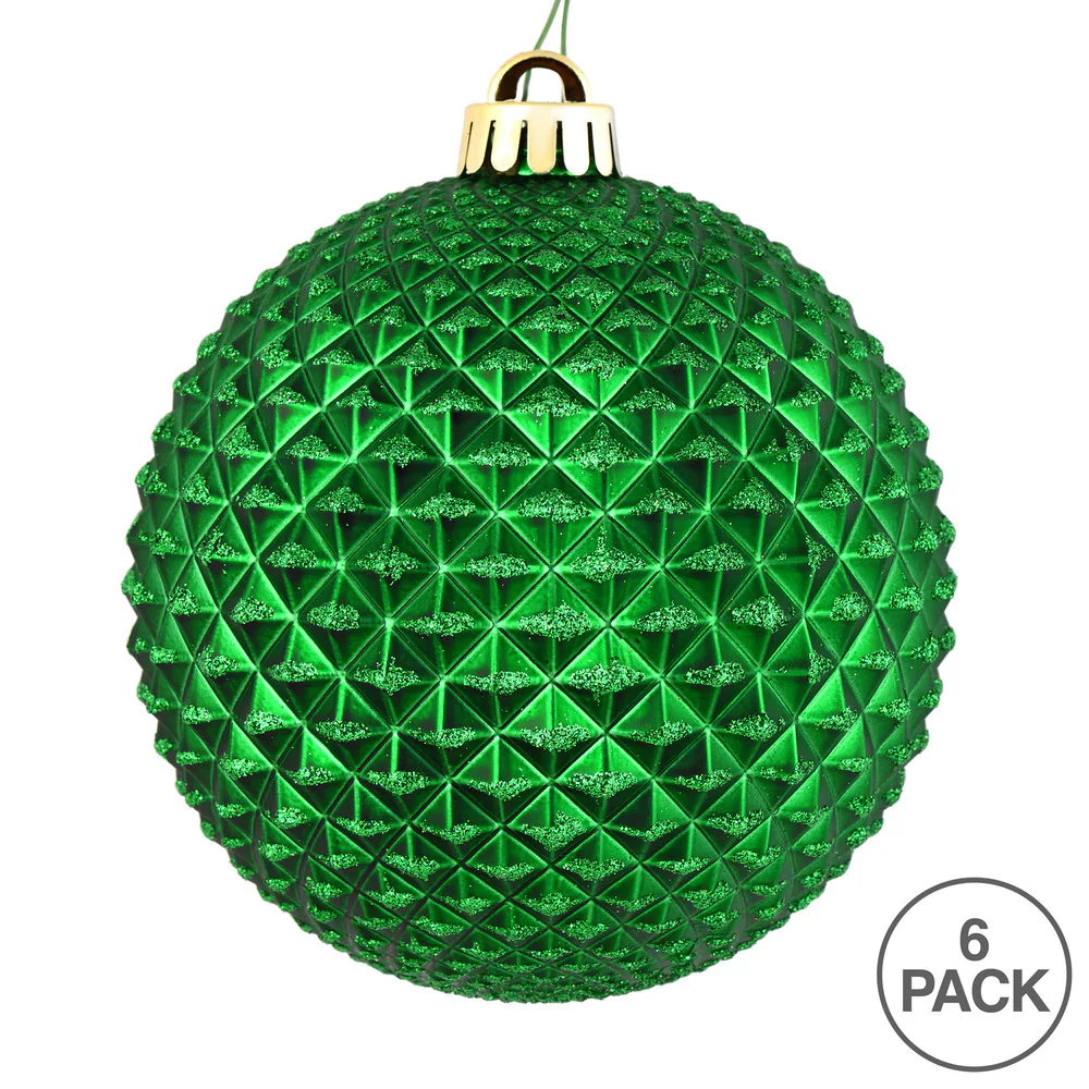 Vickerman 4" Green Durian Glitter Ball Ornament 6 per Bag
