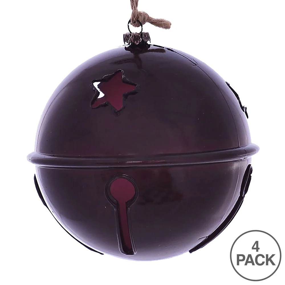 Vickerman 4.75" Burgundy Wood Grain Bell Christmas Ornament Set of 4