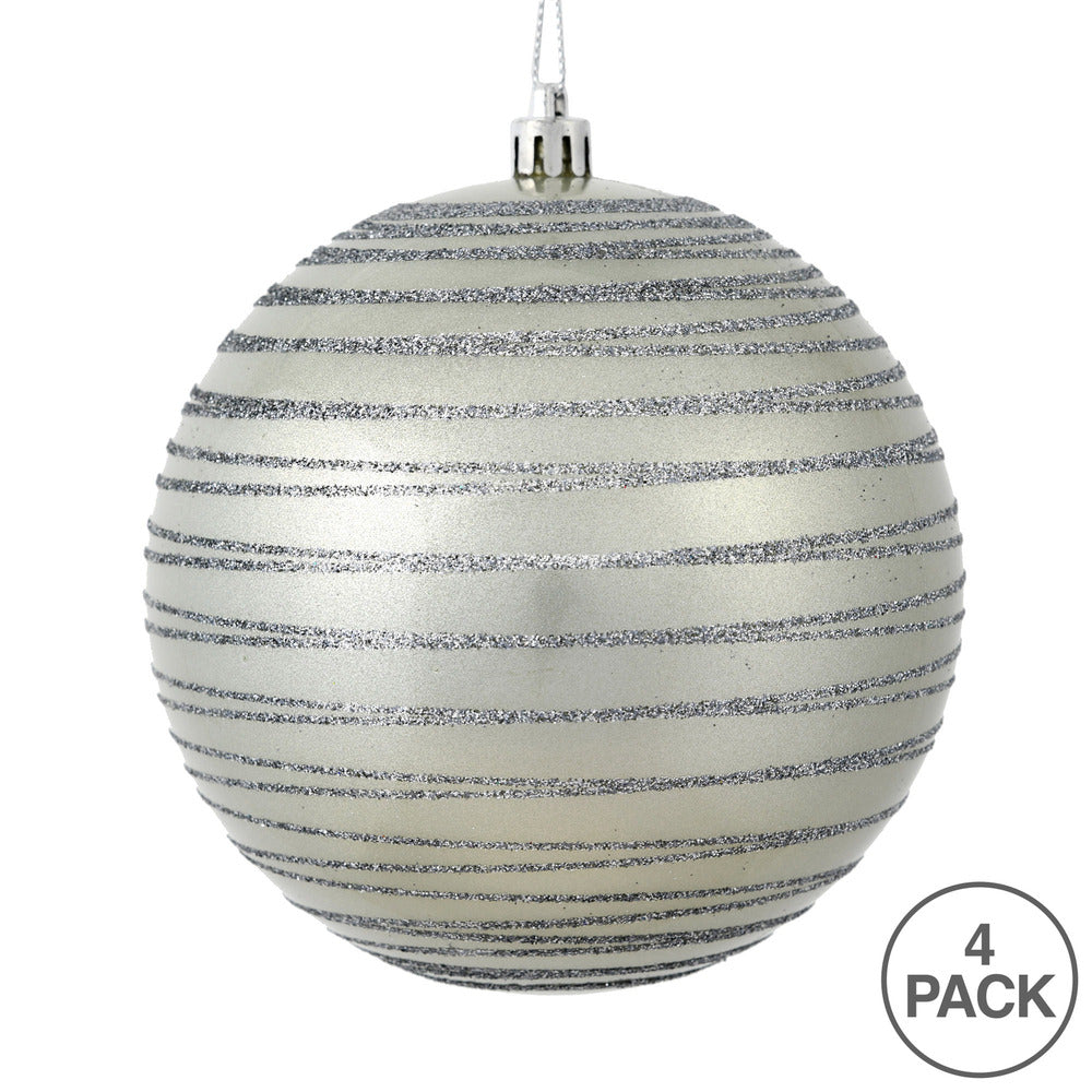 Vickerman 4" Limestone Candy Finish Ball Ornament with Glitter Lines 4 per Bag