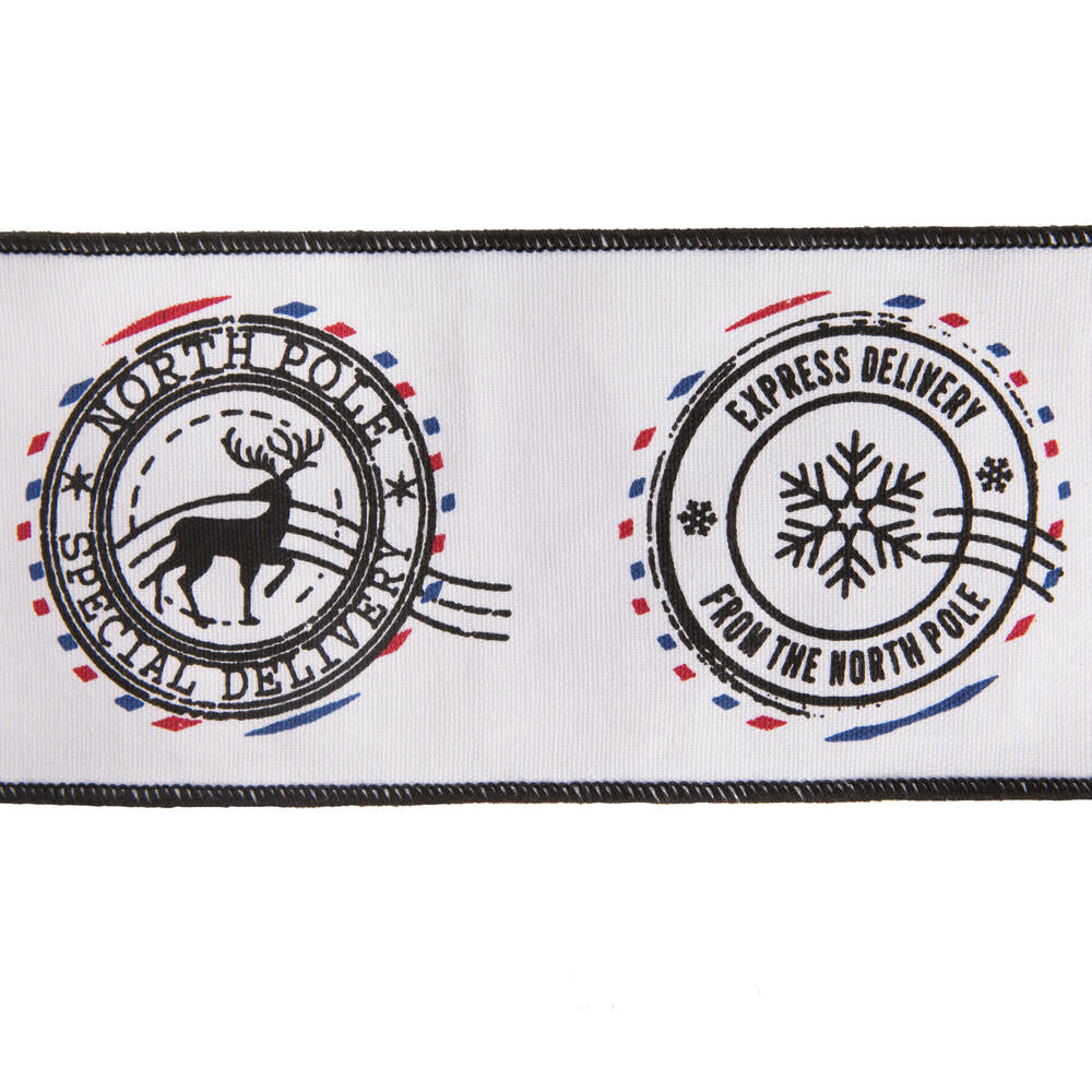 Vickerman 4" x 5 Yards White North Pole Deer Print Ribbon.