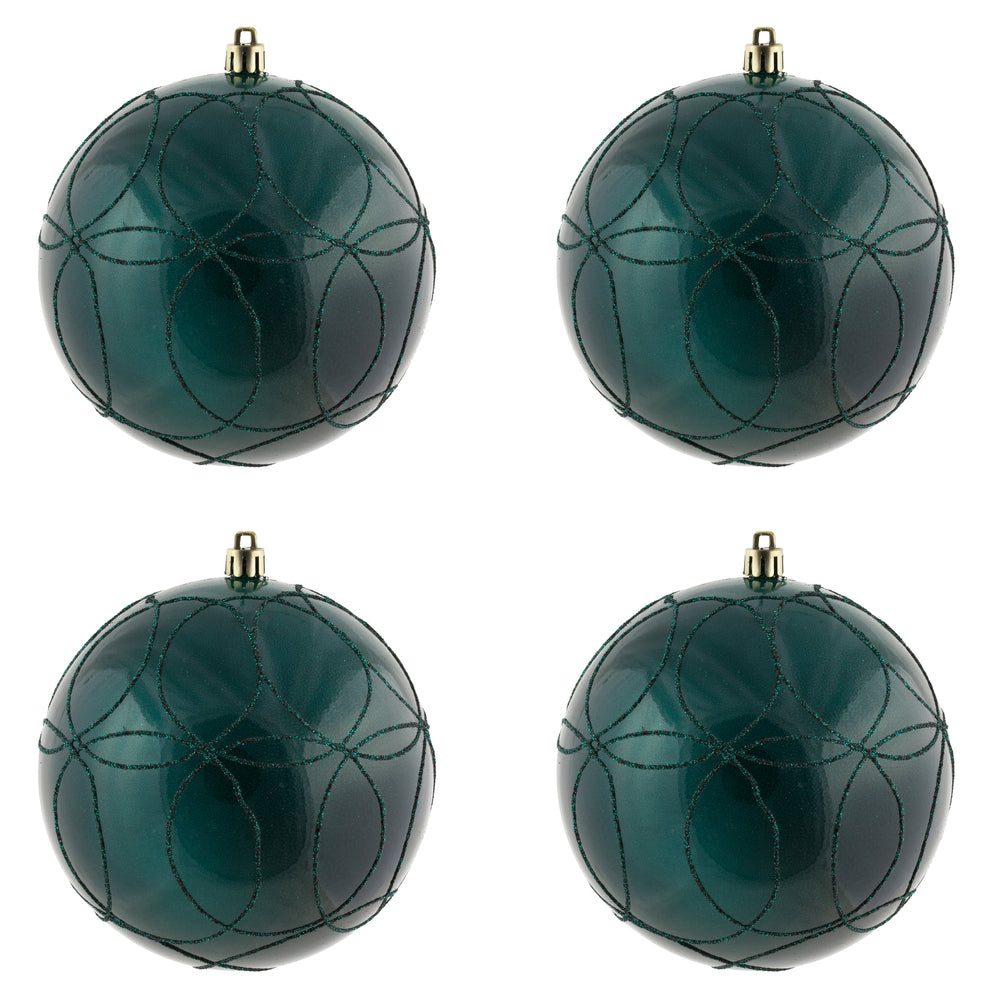 Vickerman 6" Teal Glitter Ball Ornament 4 per Bag