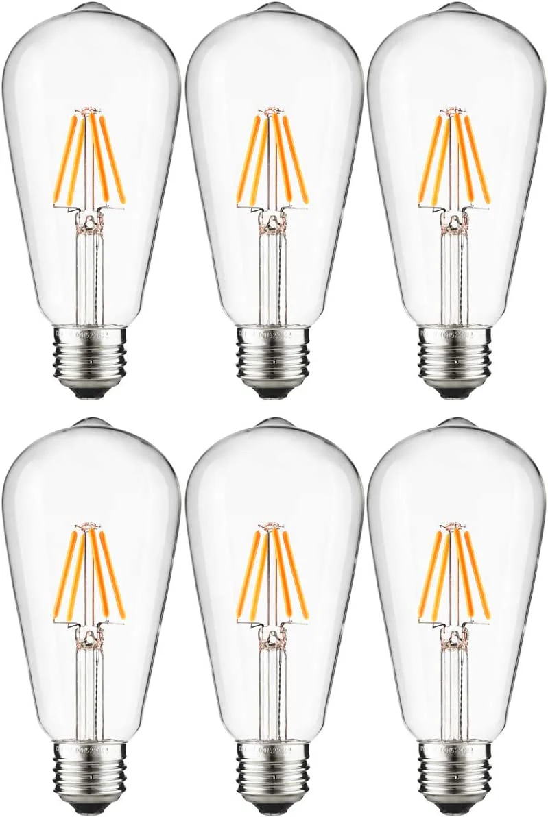 Sunlite 80753-SU LED ST19 Filament Style Edison Light Bulb 4.5 Watts (40W Equivalent), 400 Lumens, Medium Base (E26), Dimmable, UL Listed, 27K Warm White, Pack of 6