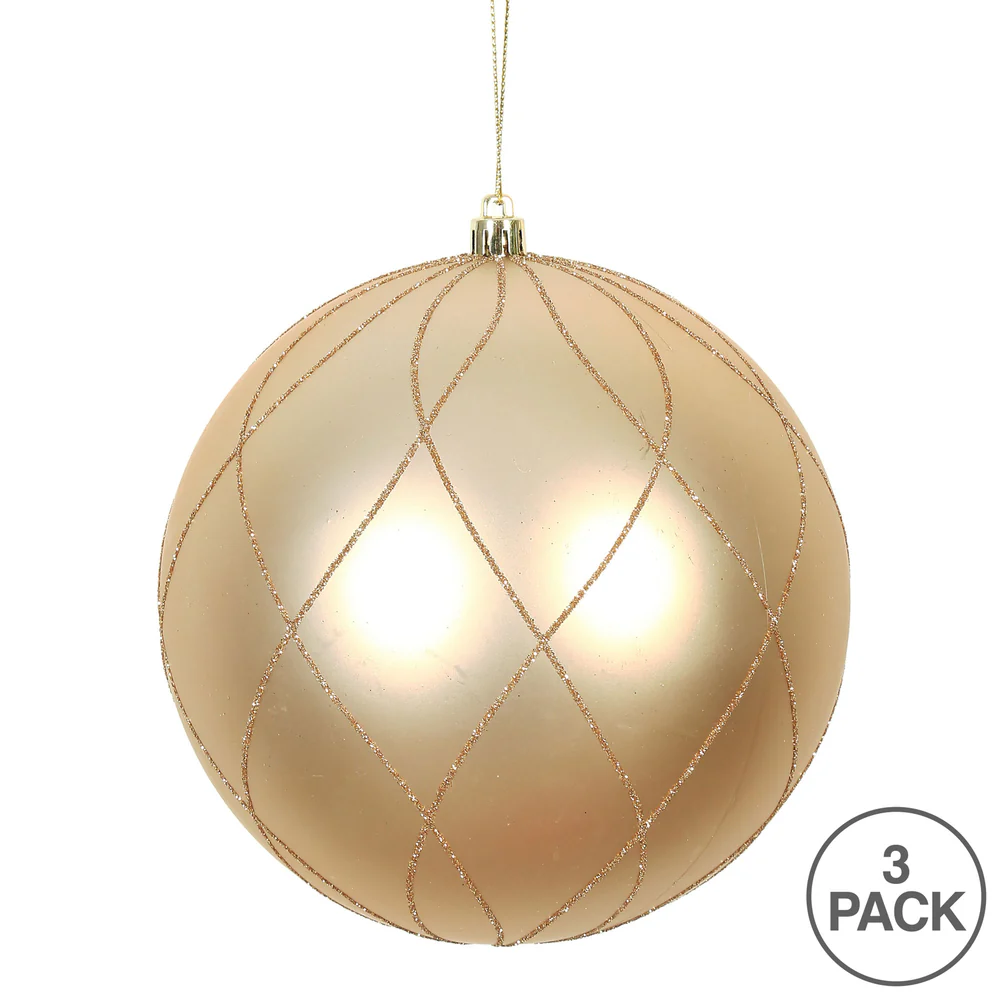 Vickerman 4" Orchid Matte Ball with Glitter Diamond Pattern. Add variety and sparkle to your holiday arrangement with this matte ornament that features a glitter pattern. Includes 4 pieces per bag. Made with shatterproof plastic. Ornament has a drill