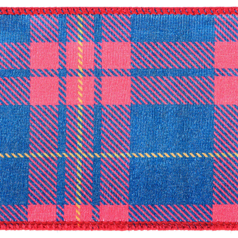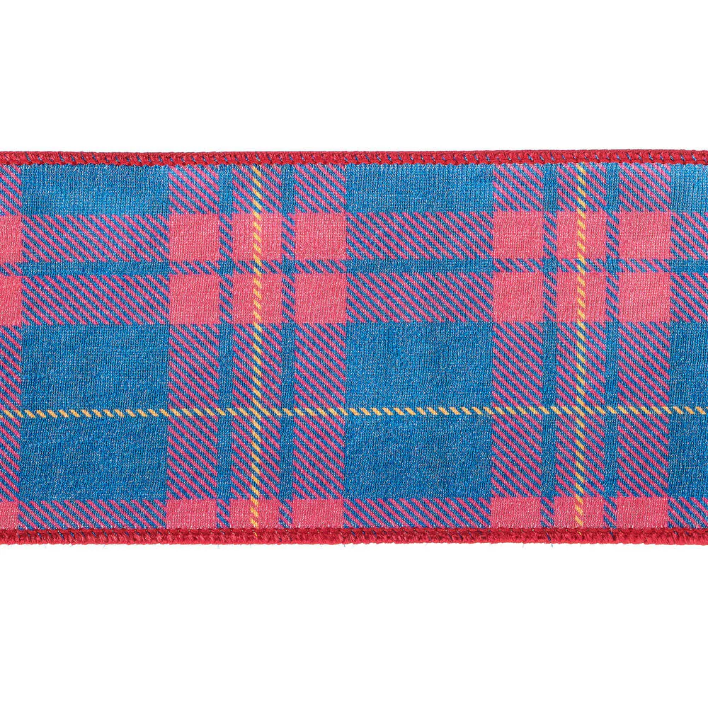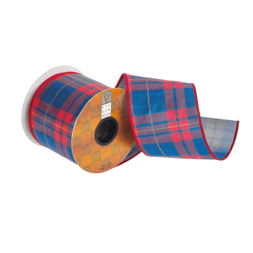 Vickerman 4" x 10 Yards Blue/Red Plaid Wired Edge Christmas Ribbon.