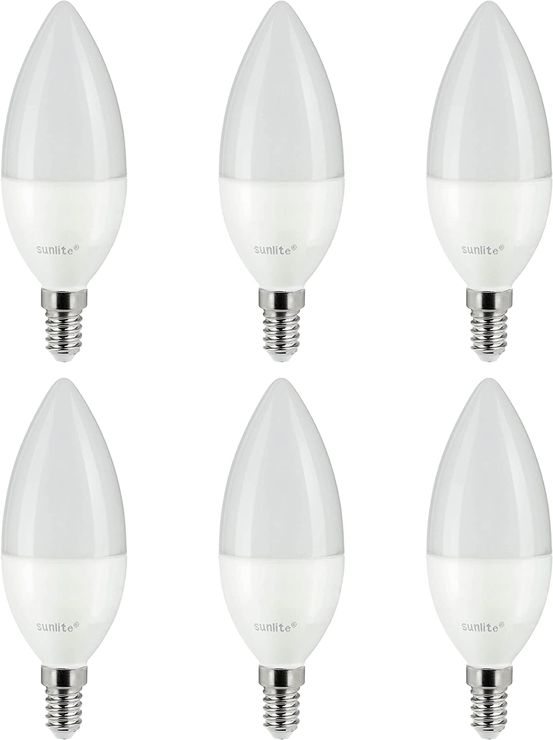 Sunlite 81485 LED B10 Frosted Torpedo Tip Chandelier Light Bulb, 5 Watts (40W Equivalent) 470 Lumens, European E14 Base, Dimmable, 2700K Warm White - 6 Pack