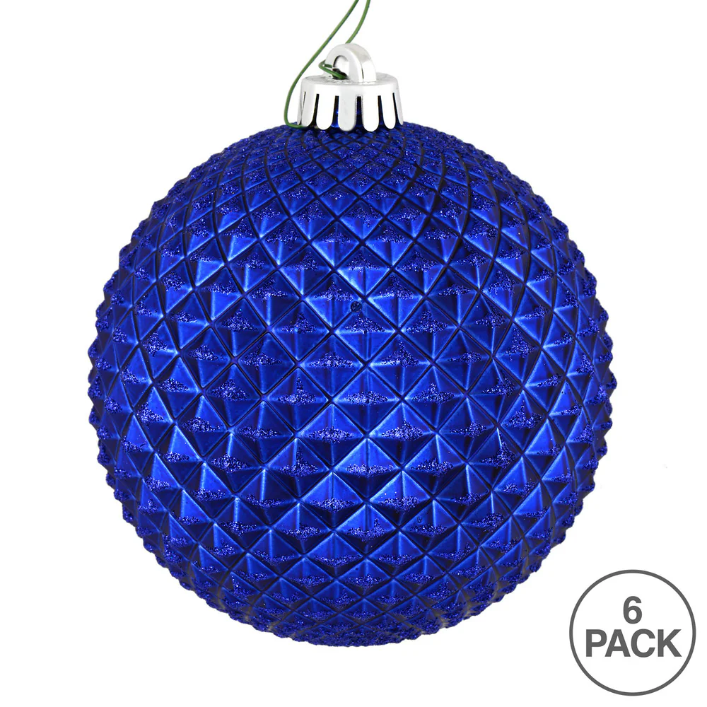 Vickerman 4" Cobalt Blue Durian Glitter Ball Ornament 6 per Bag