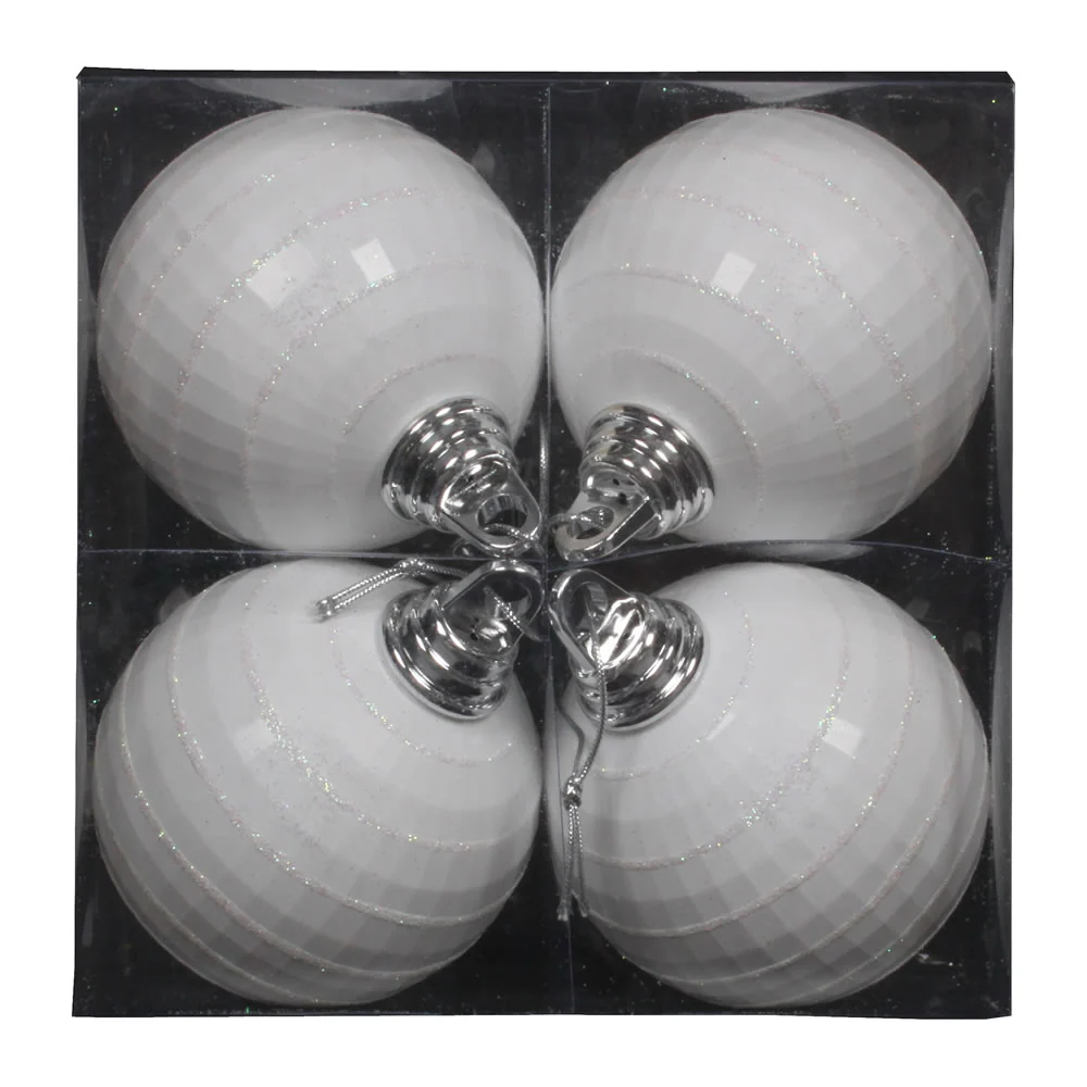 Vickerman 4" White Shiny and Matte Mirror Ball Christmas Ornament with Glitter Accents 4 per Box