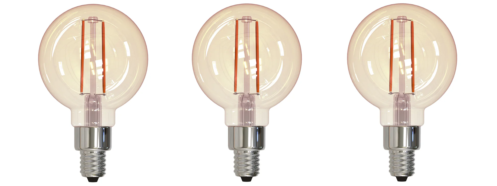 BULBRITE LED G16 CANDELABRA SCREW (E12) 2.5W DIMMABLE FILAMENT LIGHT BULB 2200K/AMBER 25W INCANDESCENT EQUIVALENT 3PK (776806)