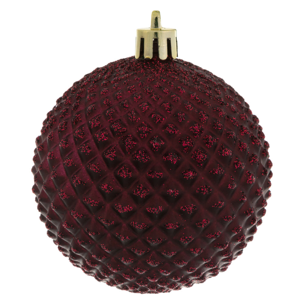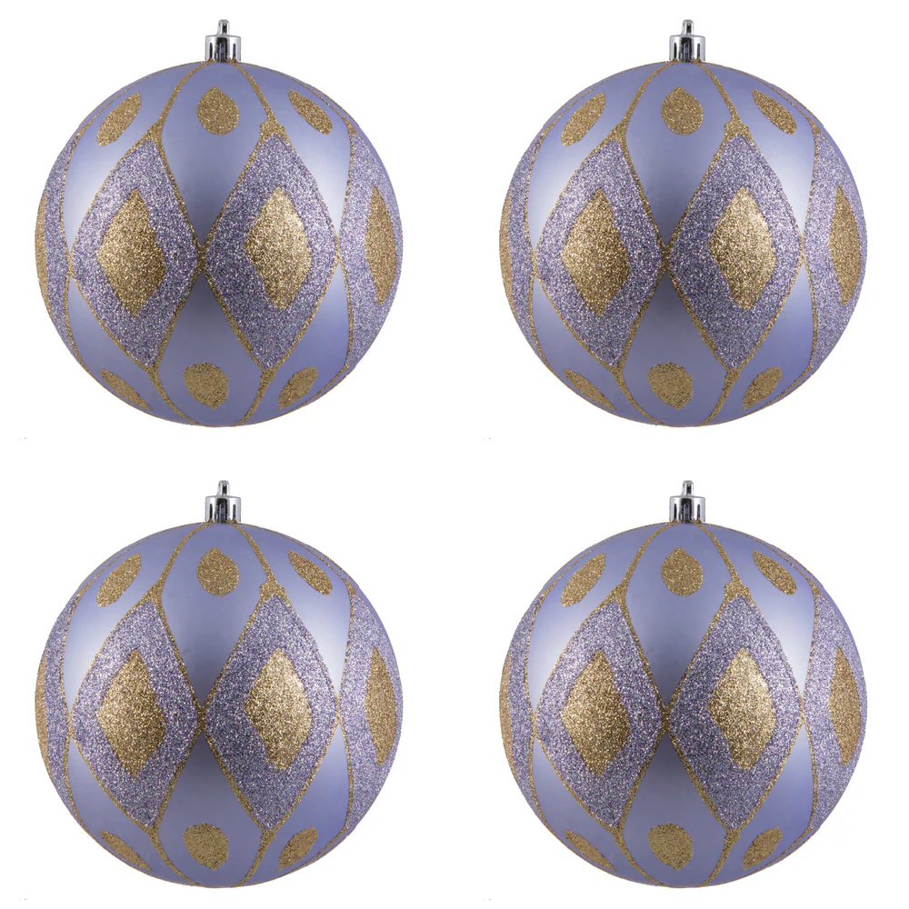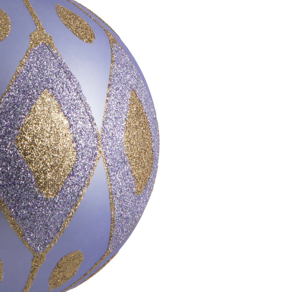 Vickerman 4.75" Lilac Matte Ball with Glitter Diamond Pattern. Add variety and sparkle to your holiday arrangement with this matte ornament that features a glitter pattern. Includes 4 pieces per bag. Made with shatterproof plastic. Ornament has a d