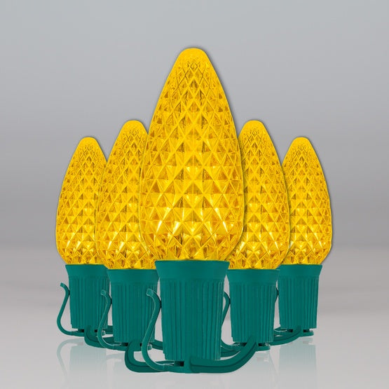 25-Light LED C9 Light Set; Yellow Bulbs on Green Wire, Approx. 16'6" Long