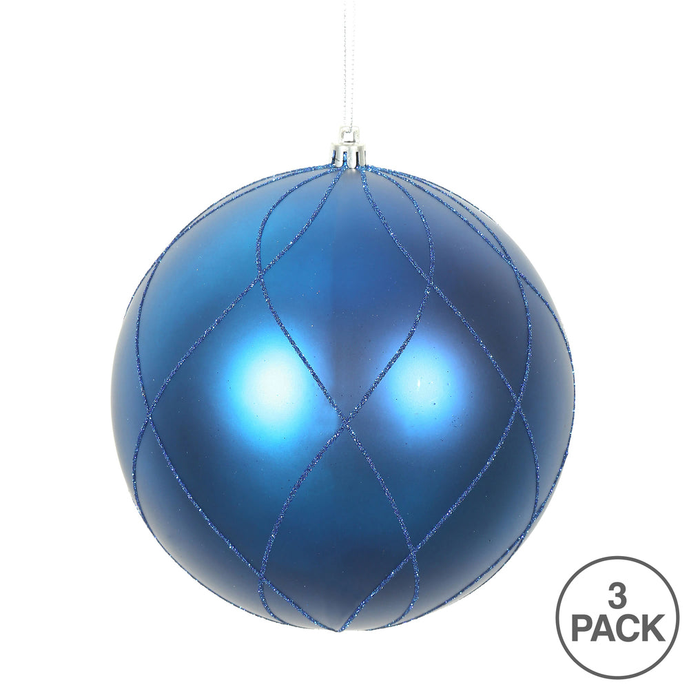 Vickerman 6" Blue Matte and Glitter Swirl Ball Ornament 3 per Box