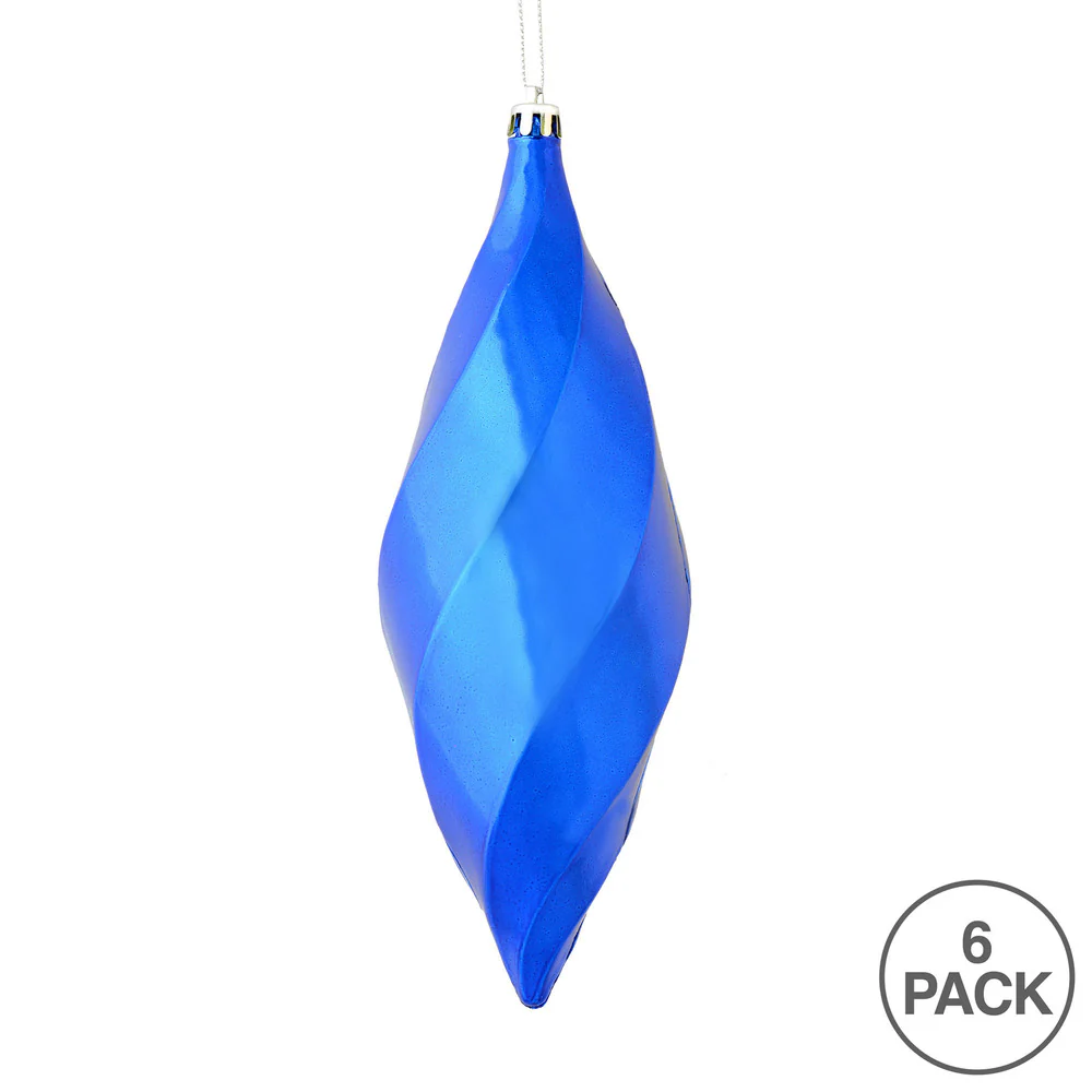 Vickerman 8" Blue Shiny Swirl Finial Ornament Pack of 6