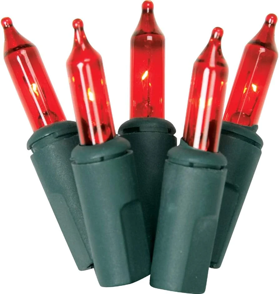Transparent Red Christmas Tree Mini Lights, 100 Lights, T1 3/4 Shaped, 31 Foot, Green Wire, Steady Burning and Flashing