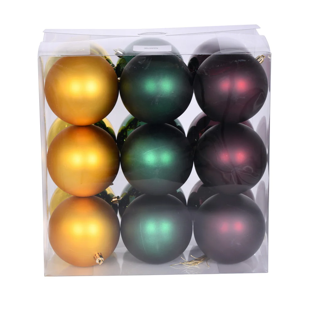 Vickerman 4" Burgundy Gold and Green Ornament Assortment 18 per box.