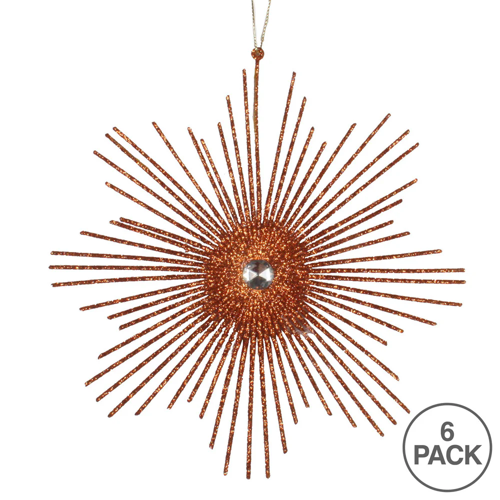 Vickerman 6.5" Copper Snowflake Burst Glitter Christmas Ornament 6 per Bag