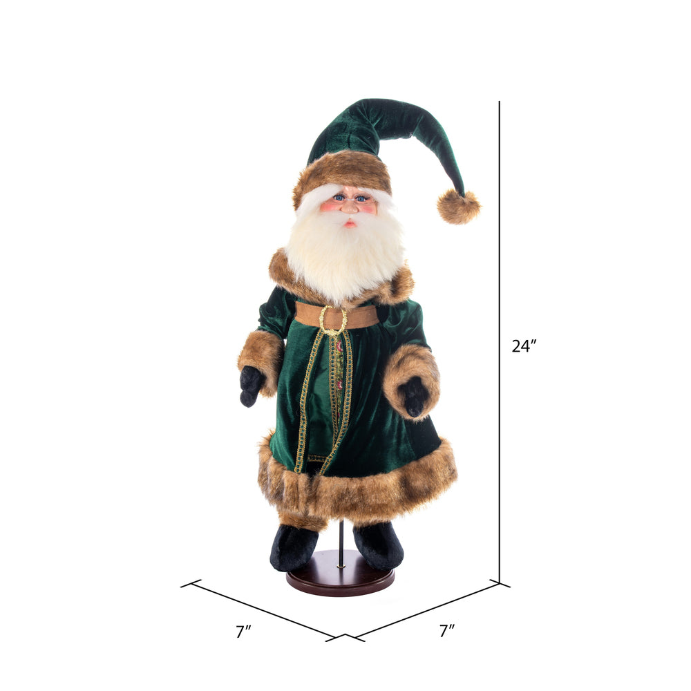 Vickerman 24" Emerald Green Velvet Santa Doll with Stand. This santa has glasses stand is removeable.