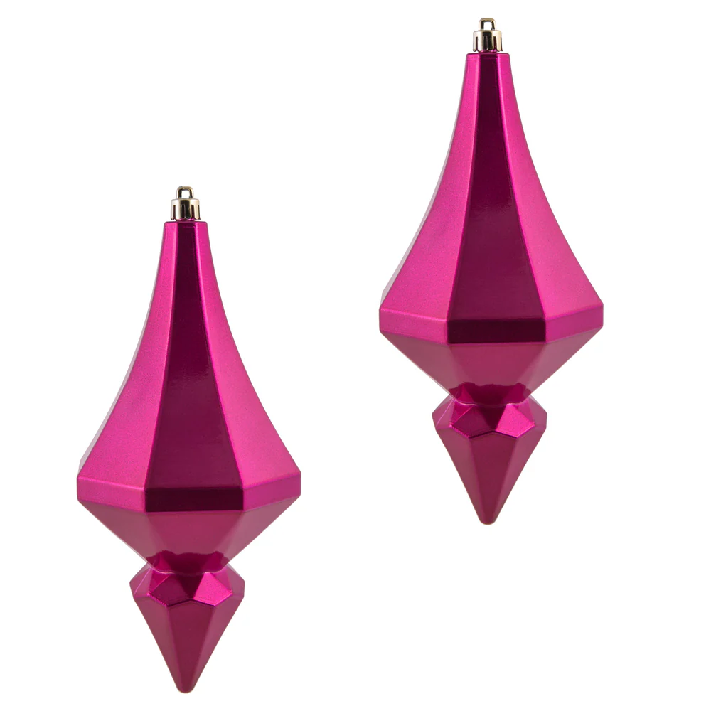 Vickerman 8" Fuchsia Candy Finish Diamond Finial Ornament Pack of 2