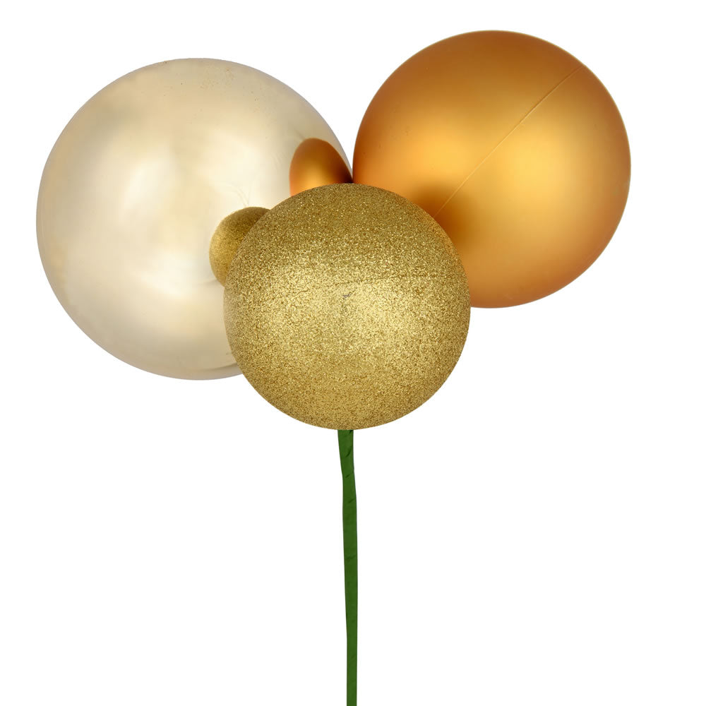 Vickerman 12" Gold Ball Ornament Christmas Pick 4 per set