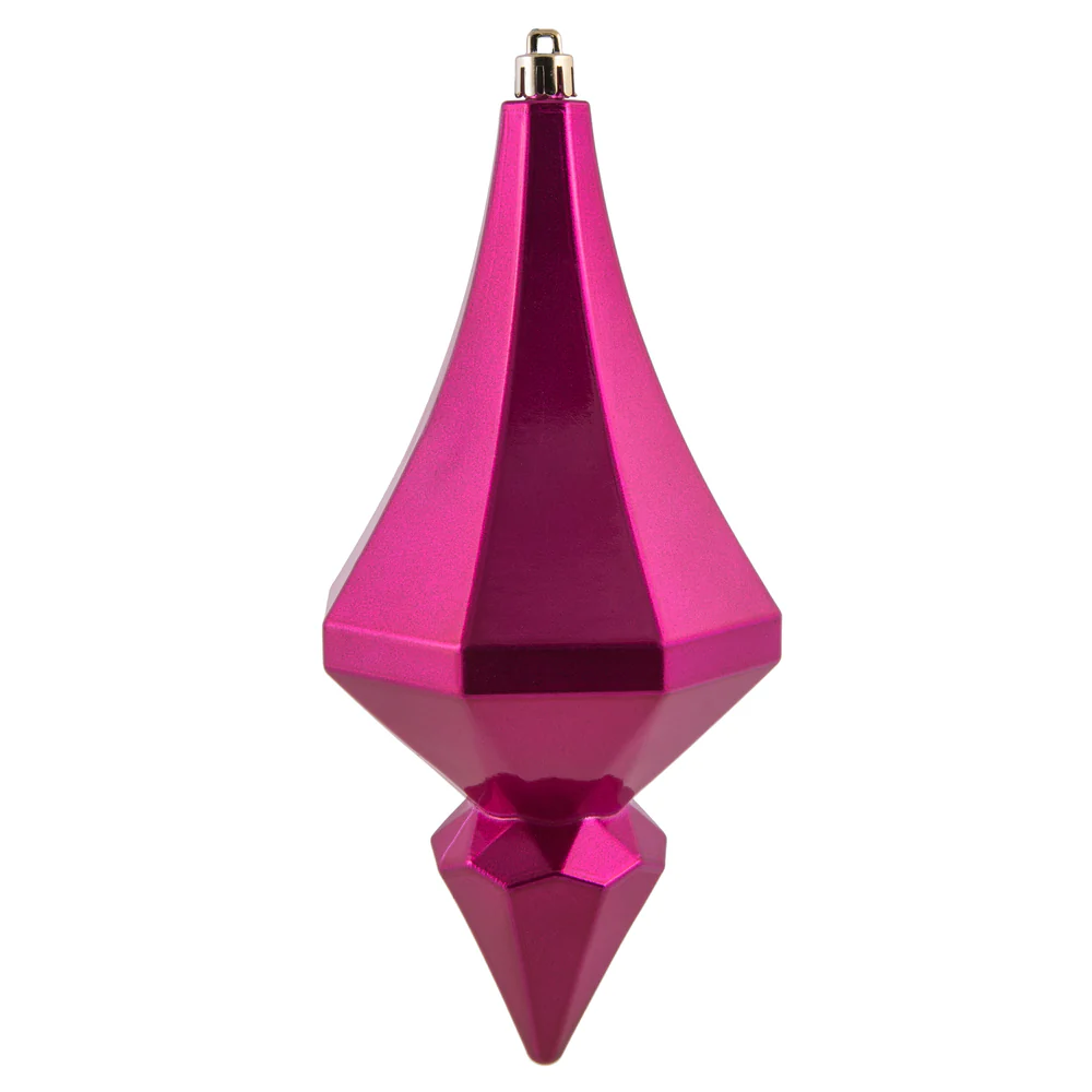Vickerman 15.7" Fuchsia Shiny Icicle Ornament with drilled and wired caps. Comes 3 per Box.
