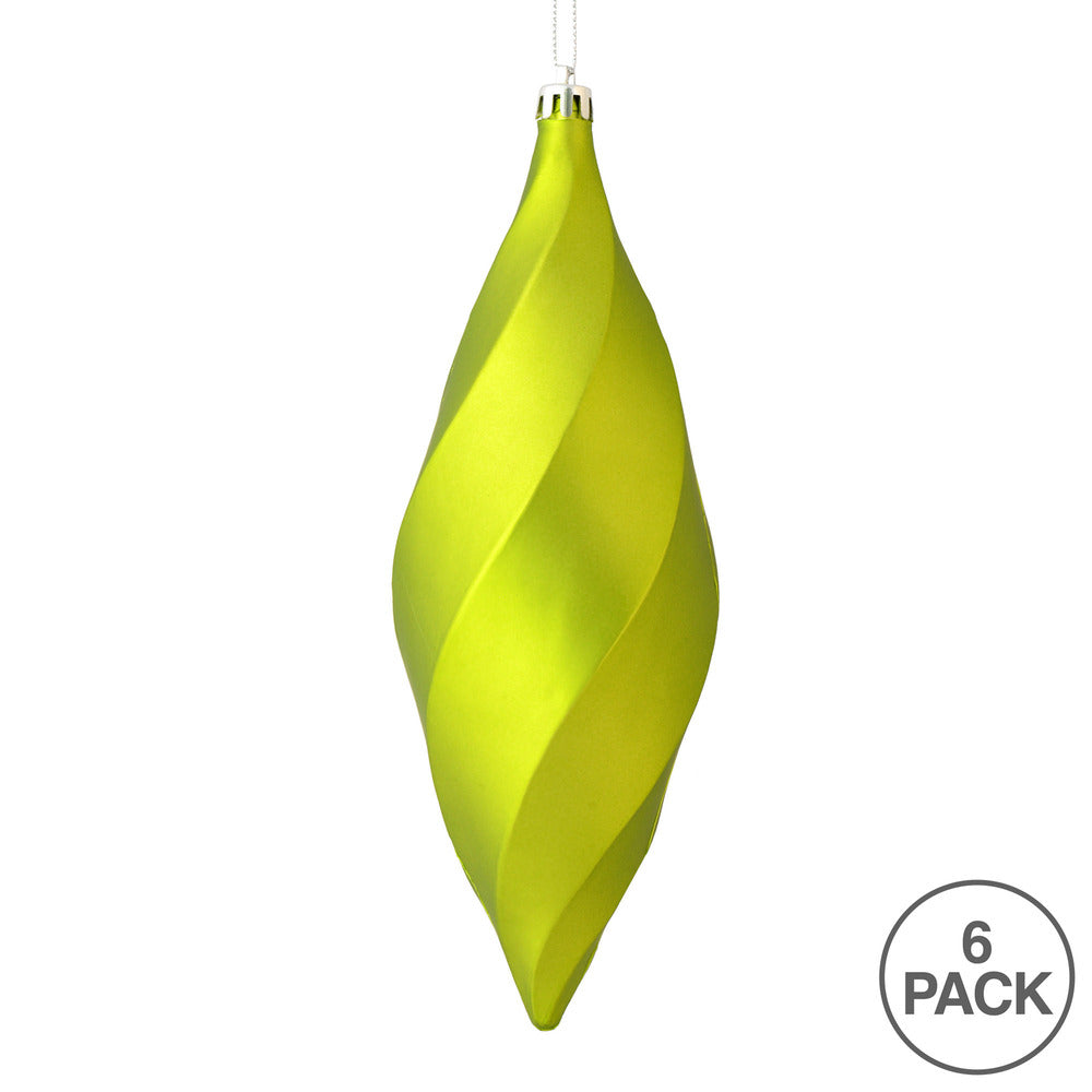 Vickerman 8" Lime Matte Swirl Finial Ornament Pack of 6