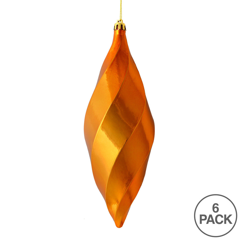 Vickerman 8" Antique Gold Shiny Swirl Finial Ornament Pack of 6