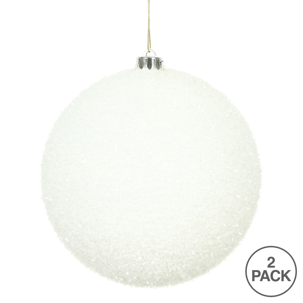 Vickerman 6" White Tinsel Ball Ornament 2 per Bag